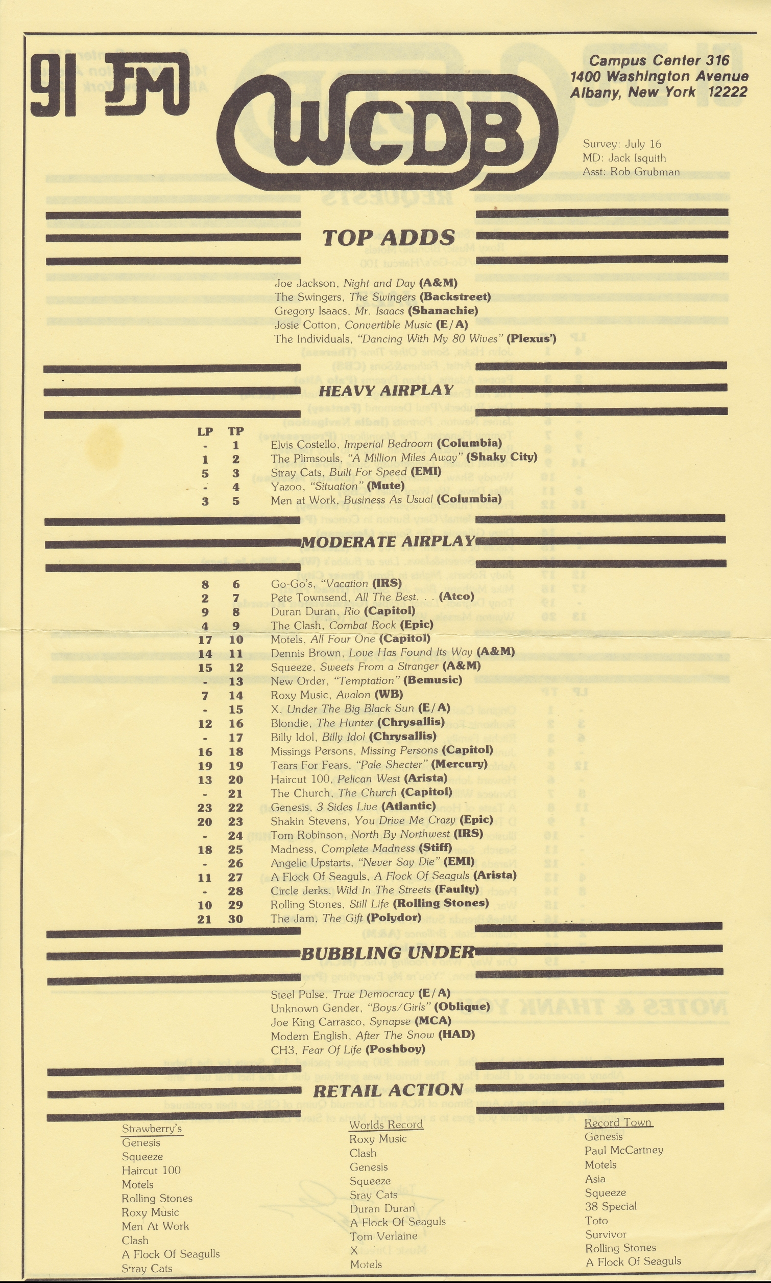WSUA/WCDB Music Charts